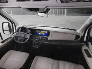 Ngay từ khi ra mắt, Transit Premium+ 18 chỗ đã ngay lập tức tạo được ấn tượng mạnh mẽ với các tài xế bởi tiện ích đồng hồ sau vô lăng và màn hình Trung tâm. Khoang lái của Transit Premium+ vượt trội với màn hình kép rất rộng, kết nối Apple CarPlay/ Android Auto không dây. Nhờ vậy tài xế có được trải nghiệm lái hiện đại hơn.